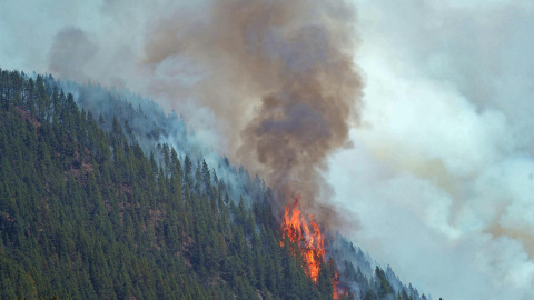 El fuego ha quemado 2.423 hectáreas, tiene un perímetro de 26 kilómetros y ha desalojado a 584 personas. Todavía sigue activo.