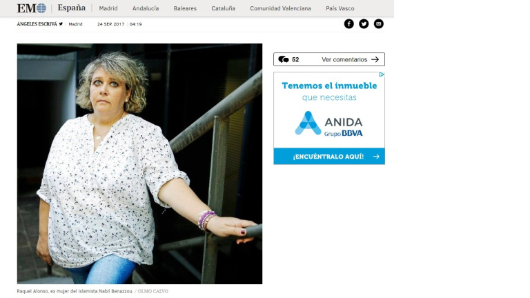 Raquel Alonso, esposa de un islamista miembro de la Brigada Al Andalus Nabil Banazzou, encarcelado en 2014, se siente desprotegida ante las coacciones que está sufriendo desde hace varios meses. El Ministerio de Interior se toma nada en serio las denuncias por acoso que esta mujer de Navalcarnero, Madrid, está presentando, según recoge El Mundo.