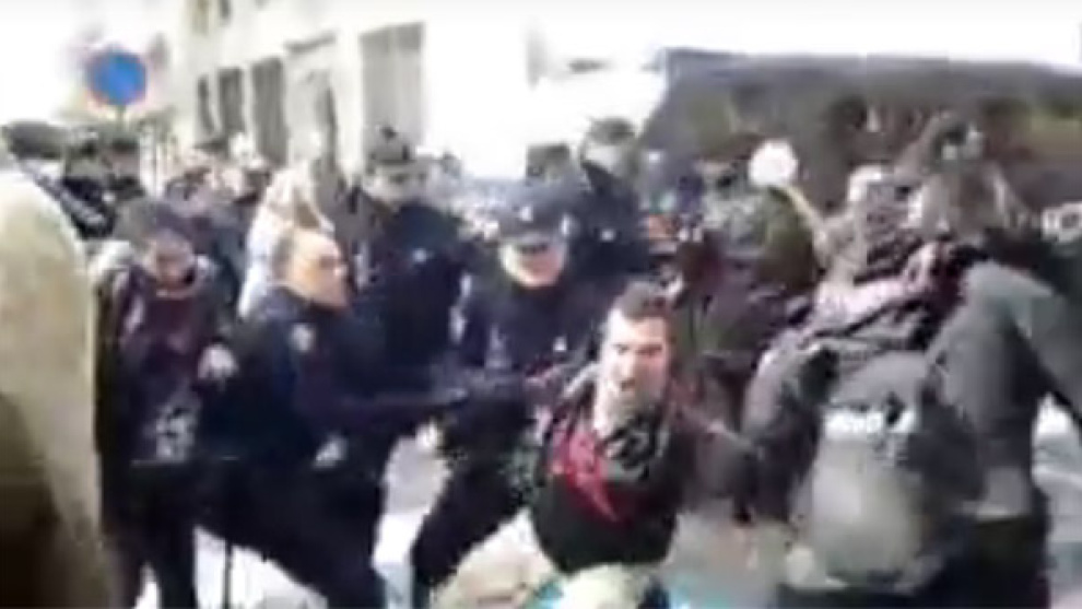 Lo llamativo del caso es que tras el visionado de los vídeos de los supuestos incidentes y las declaraciones de los acusados y de los agentes lesionados, dos de ellos por videoconferencia, el propio fiscal ha acordado retirar los cargos contra dos de los imputados, Juan H.B. y Luis Miguel H.P, al no apreciar actuación delictiva alguna por su parte, y en cambio ha mantenido su petición de nueve meses de prisión para Javier V.F. por delito de atentado.