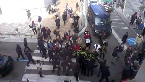 Los hechos que han concluido en anuncio de sentencia absolutoria se remontan al mediodía del 2 de febrero de 2014, al término de una manifestación convocada por Parados en Movimiento que culminó sin incidentes en la Plaza Mayor y tras la cual un grupo de entre 60 y 80 personas comenzó a transitar por calles adyacentes con una gran pancarta y coreando consignas.