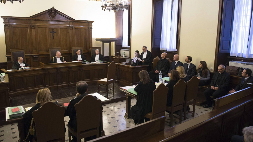 En el banquillo de la sala, presidida por el juez del Tribunal vaticano Giuseppe Dalla Torre, se sentaron el sacerdote español Lucio Vallejo Balda, la ex relaciones públicas italiana Francesca Chaouqui, el excolaborador del monseñor Nicola Maio y los periodistas Gianluigi Nuzzi y Emiliano Fittipaldi, autores de los libros donde se publicaron los documentos filtrados.