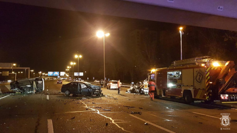El accidente se produjo a las 5.30 horas, en el kilómetro 3 del anillo exterior de la M30, (dirección norte), entre Ventas y Costa Rica, cuando un coche que al parecer circulaba en sentido contrario colisionó con otros dos, uno de los cuales volcó.