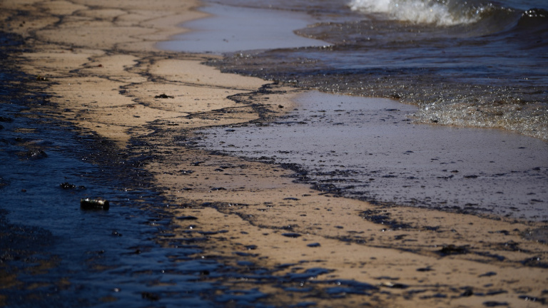 En una extensión aproximada de dos kilómetros de playa, parte del vertido se ha depositado en la arena y en la orilla. Ante la circunstancia, se ha izado la bandera roja para prohibir el baño en la zona.