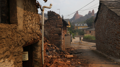 "Están deseando que se pierdan los pueblos para no tener que preocuparse por ellos", critica su interlocutora, otra vecina de la comarca. Apunta a que de llegar el fuego al núcleo urbano hubiese ardido todo por las tradicionales casas de corredor del Bierzo, muchas ya abandonadas y en mal estado. "Los señoritos sentados en Madrid, Valladolid y León lo ven todo muy bonito. Mandaron a ocho camiones de bomberos, el Ejército y no apagaron nada. Ni bajaron el bulldozer que traían con él, que podía haber hecho un cortafuegos", incide Manolo, que así se llama este borrenés, mientras pasa una patrulla de la Guardia Civil. Desde Borrenes la conversación también gira sobre cómo los vecinos son quienes apagan el fuego poniéndose en peligro y los trabajadores públicos quienes se lo impiden, llegando casi al enfrentamiento físico. No sin motivo, ya que este año otro voluntario local ha muerto por las llamas en esta misma provincia.