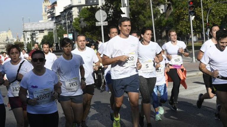 El presidente del Gobierno en funciones, Pedro Sánchez, ha participado en la sexta edición de la carrera contra la violencia machista que se celebra este domingo para expresar el apoyo a las víctimas de este tipo de violencia contra la mujer.