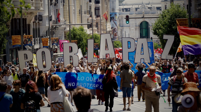 Los pacifistas han salido a las calles de Madrid tras dos días de Cumbre por la Paz.