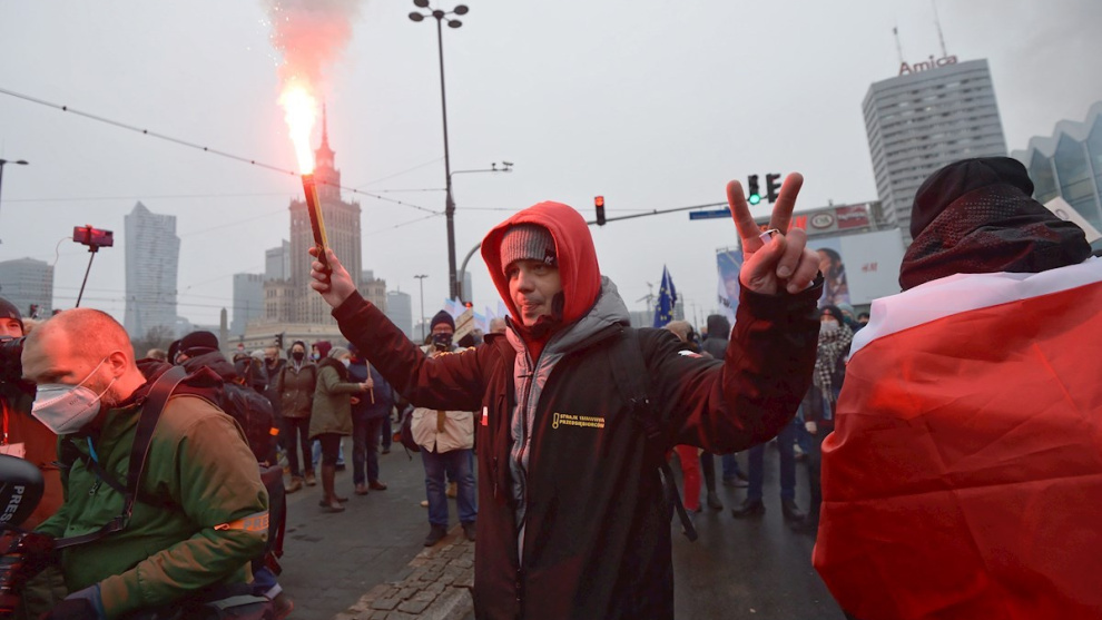 Los manifestantes mostraban el creciente descontento en Polonia con el Ejecutivo nacional por un abanico de temas que van desde la gestión de la pandemia a la última sentencia que restringe radicalmente el derecho al aborto.