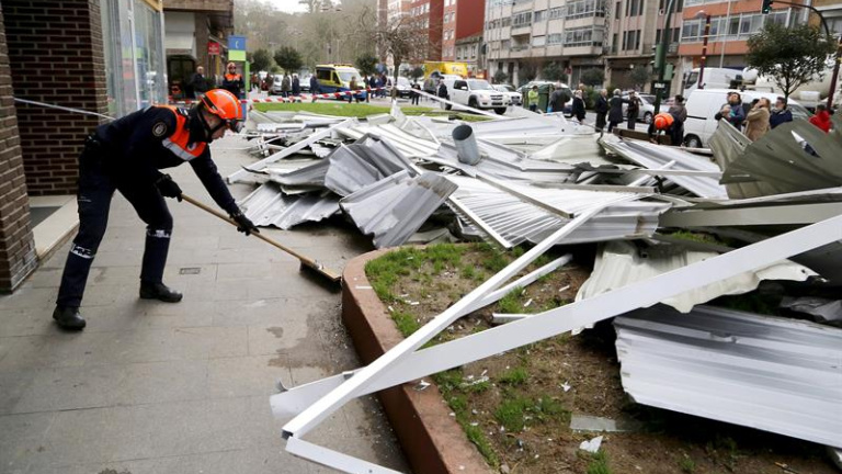 Un anciano falleció en Muras (Lugo) al resbalar y recibir un golpe en la cabeza cuando retiraba un árbol derribado por el viento. Suspendidos los partidos del Dépor y el Celta. Los fallos eléctricos afectaron a 50.000 personas en Galicia.