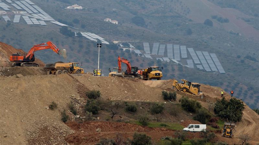 Los trabajos se han ralentizado porque se ha encontrado un estrato rocoso de pizarra en las excavaciones previas a la ejecución de la perforación vertical de los túneles paralelos al pozo donde cayó el pequeño.