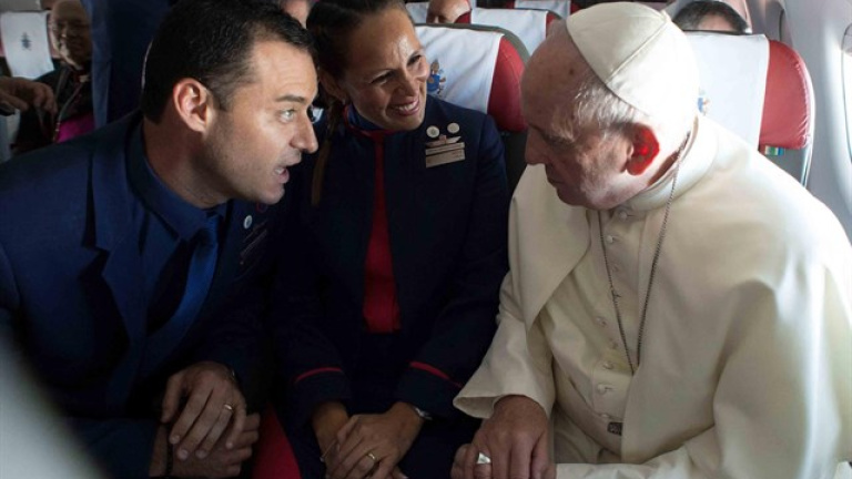 Papa FranciscoEl Papa casa a dos tripulantes en pleno vuelo