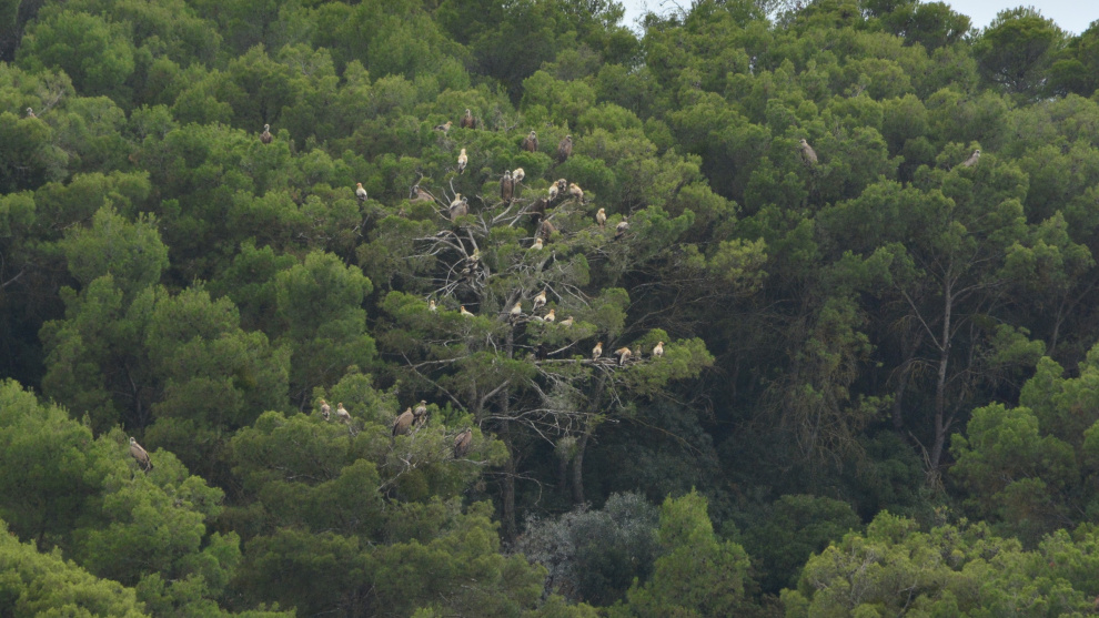 No se trata de una colonia exclusivamente local, ya que entre el centenar de alimoches que suelen formarla han sido detectados animales anillados en Francia que han llegado allí tras cruzar el Pirineo y resulta habitual la presencia de otros llegados de Navarra, ni tampoco de un enclave desconocido, ya que los investigadores de la Estación Biológica de Doñana, del CSIC (Centro Superior de Investigaciones Científicas), llevan quince años realizando un seguimiento del área, en la que con frecuencia pernoctan algunas decenas de buitres leonados.