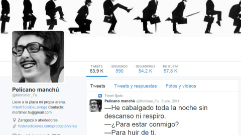 No sabemos si su vida es interesante pero lo cierto es que sus tuits (Pelicano Manchú) hacen más interesantes los timeline de sus seguidores. Concretamente de sus más de 50.000 seguidores. Tuits ingeniosos y buenas dosis de sentido del humor están garantizados.