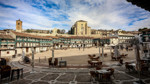 El casco urbano de Chinchón fue declarado, en 1974, Conjunto Histórico Artístico por el Consejo de Ministros y entre sus atractivos turísticos destaca su plaza mayor. Una plaza de origen medieval que cuenta con numerosos soportales, techos escalonados y 234 balcones de madera pintados de verde.