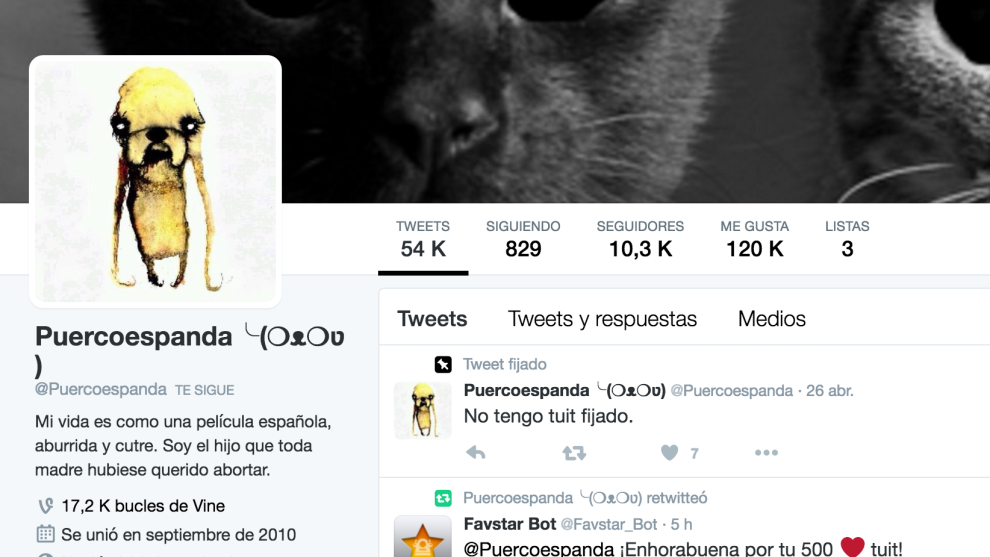 Más de 10.000 personas siguen en Twitter a Puercoespanda, uno de los auténticos magos del humor que pueblan Twitter repartiendo carcajadas.