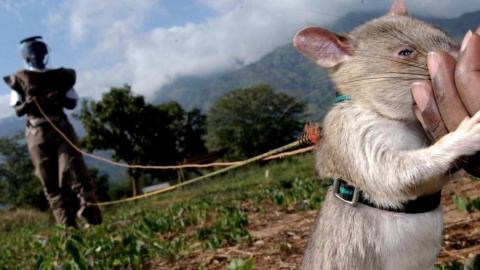 Ratas gigantes para detectar campos de minas en Camboya