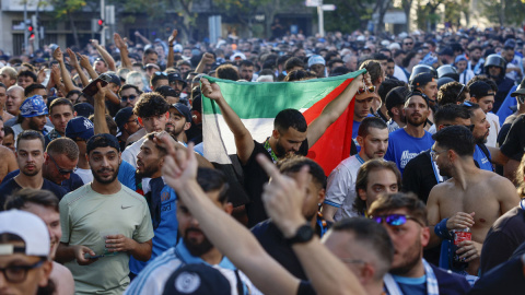 El Real Madrid impide la entrada de aficionados con banderas de Palestina en su estadio antes del partido frente al Olympique de Marsella