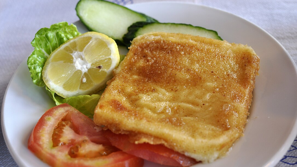 Se trata de un queso feta rebozado que se fríe en aceite caliente hasta conseguir una costra perfecta.