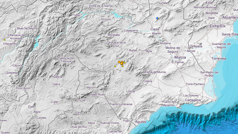Un total de seis seísmos se han contabilizado en el Nororeste de Murcia entre las 23 horas y las 5 horas de la madrugada de este domingo. El primer indicio de actividad tuvo lugar en Cehegín, con una magnitud de 2,1 grados en la escala de Richter, además de una profundidad de tres kilómetros. El temblor se notó en pedanías altas de Lorca aunque no hay daños registrados según recoge el medio local La opinión de Murcia.