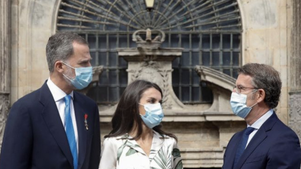 Los reyes han estado acompañados por el presidente de la Xunta de Galicia en funciones, Alberto Núñez Feijóo; el del Tribunal Constitucional, Juan José González Rivas; y la vicepresidenta tercera y ministra de Asuntos Económicos, Nadia Calviño, entre otras autoridades, todos ellos protegidos con mascarilla.