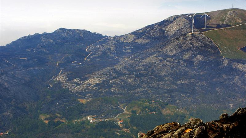 Según las primeras estimaciones la superficie quemada por este fuego iniciado en Caldas ronda las 300 hectáreas, principalmente de bosques que fueron replantados por la comunidad de montes tras los incendios de 2006.