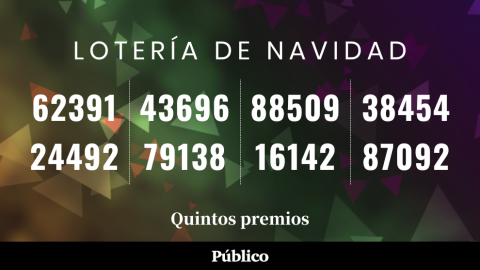 62391, 43696, 88509, 38454, 24492, 79138, 36142 y 87092. Estos son los números agraciados con el quinto premio del Sorteo de Navidad 2022. Los afortunados se embolsarán 6.000 euros por décimo o 300 euros por cada euro jugado.