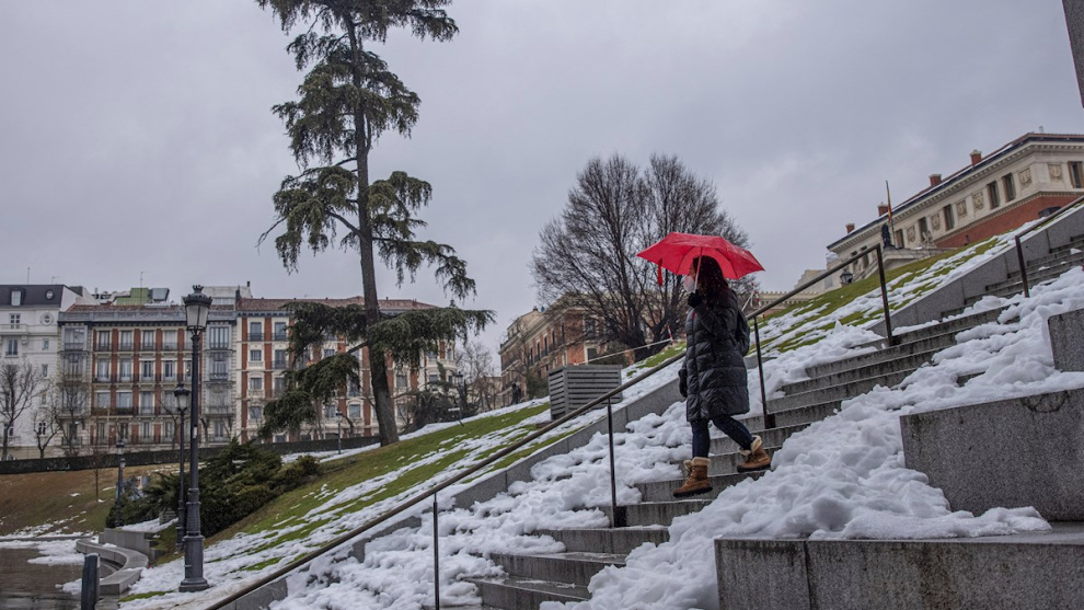 Pese a que las precipitaciones más intensas se producirán en el tercio occidental peninsular, los estragos causados por Filomena todavía en las calles de la capital amenazan con fuertes deshielos.