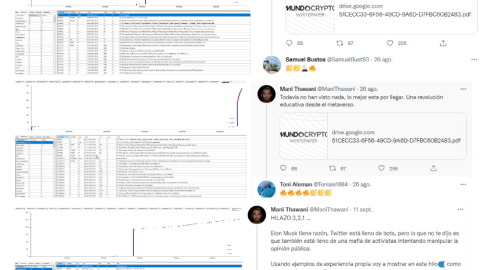 Más de cien cuentas creadas en 2013 sin actividad hasta 2022; tuits en 2013 escritos en diversas lenguas que en 2022 se convierten en 'crypto-bros' españoles; mensajes de activación; ataques dirigidos a quien critique a Mani Thawani, CEO de MundoCrypto; y retuits y aplausos a la empresa de criptomonedas y blockchain… El 'troll center' de MundoCrypto al descubierto.