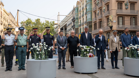 Al acto institucional, frente al mosaico de Joan Miró en las Ramblas donde el terrorista Younes Abouyaaqoub detuvo la furgoneta con la que embistió a cuantas personas encontró a su paso la tarde del 17 de agosto de 2017, han asistido, entre otros, el presidente de la Generalitat de Catalunya, Salvador Illa; el del Parlament catalán, Josep Rull; el alcalde de Barcelona, Jaume Collboni, y el delegado del Gobierno en esta comunidad, Carlos Prieto.