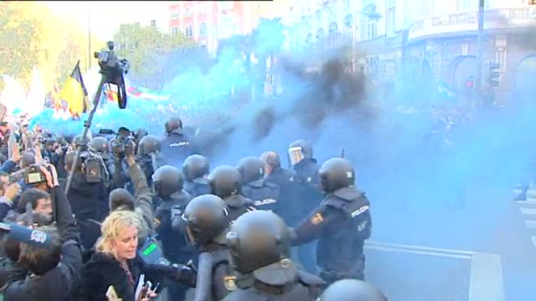 Tensión en los accesos al Congreso cuando los taxistas han intentado quitar las vallas y la policía les ha intentado dispersar. Es el colofón a una mañana de protestas en Madrid. El taxi hoy se ha hecho oír. Une sus fuerzas contra los coches con conductor, Uber y Cabify. Miles de taxistas de toda España han tomado el centro de Madrid. Denuncian la competencia desleal. El taxi para 24 horas. La huelga ha complicado el tráfico todavía en Madrid, Barcelona o Valencia. Las paradas de taxis vacías han cogido despistados a muchos turistas y han tenido que cambiar de planes. La huelga se alarga hasta las 6 de mañana.