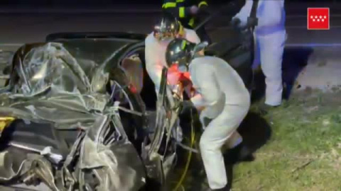 Un hombre ha fallecido y una mujer de 40 años ha resultado herida en un accidente ocurrido anoche en la M50 a la altura del municipio madrileño de Getafe. La mujer fue trasladada al hospital Doce de Octubre con fractura de clavícula y un traumatismo facial. El siniestro tuvo lugar en una recta y por causas que se desconocen, el coche dio varias vueltas de campana. Debido al fuerte impacto los bomberos tuvieron que excarcelar el cuerpo del fallecido que había quedado atrapado en el interior.