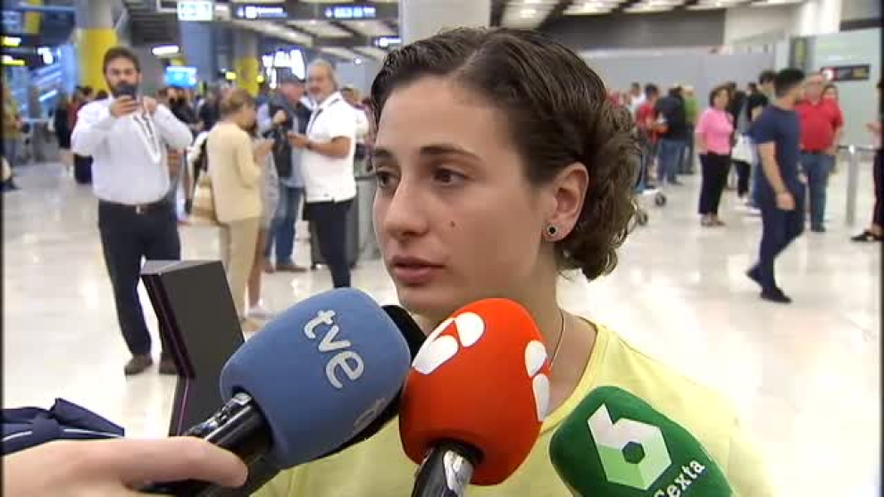 La primera mujer campeona del mundo de motociclismo, Ana Carrasco, ha aterrizado esta mañana en Madrid después de hacerse ayer con el título en Francia. Dice que todavía no ha tenido tiempo de pensar demasiado en la hazaña que ha logrado, que está muy contenta y muy agradecida a todo el equipo que tiene detrás.