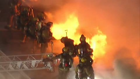 Video AP-LaPresse/Agencia Atlas-Aparatoso incendio en un ático de un barrio de las Ángeles, en Estados Unidos. Más de 100 efectivos de bomberos fueron necesarios para apagar unas llamas que brotaban con mucha fuerza de la segunda planta de ese edificio. El fuego comenzó en la primera planta y todo el inmueble tuvo que ser desalojado. Cincuenta minutos tardaron en apagarlo y a esta hora la policía mantiene detenida a una persona que podría ser la responsable del incendio.