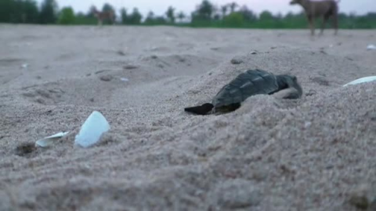 Son crías de tortugas golfa, la especie más típica de esa zona. Lo habitual es que cada primavera vayan a esas playas para poner sus huevos durante la noche, cuando no hay nadie. Pero ahora, como la playa está desierta, lo han hecho de día y han dejado una imagen espectacular en la arena.