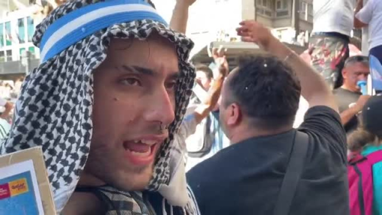 Del drama al éxtasis. Con ese grito estalla la capital argentina... Emociones compartidas por cientos de miles de personas envueltas en banderas albicelestes y alabando a un claro ídolo: Messi pudo tener la copa, es una alegría enorme. La alegría invade cualquier rincón, cualquier esquina. Una marea humana que desborda la ciudad de Buenos Aires. Es su triunfo más sufrido y el más deseado. Para muchos aficionados es la primera vez que ven a su equipo convertirse en campeón. Una celebración tan importante que no tiene fin.