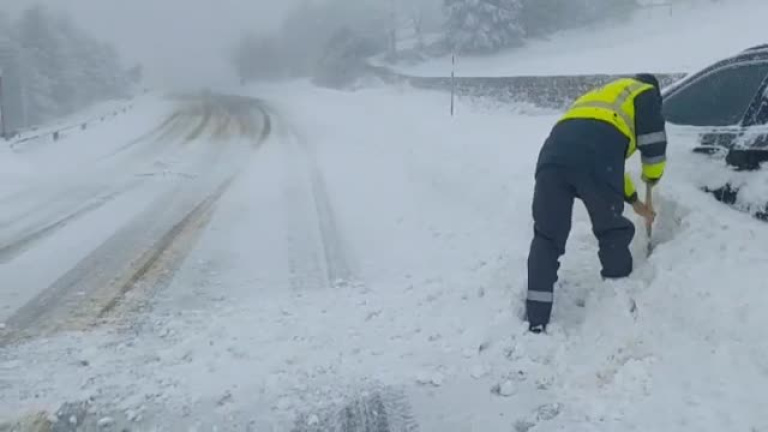 Guardada en el trastero, hoy se hace imprescindible. Tanto a las puertas de casa, como como en carretera. En Piedrafita. Hacía tiempo que no caía una nevada así. Nieve que cambia el color de Lugo y aunque también haya caído con intensidad, les sabe a poco. Pero suficiente para que la sensación térmica se desplome justo lo contrario en Dozon, en el interior de Pontevedra. Entusiasmo extremo para los que nunca han visto la nieve. Que contrasta con los acostumbrados vecinos, los de siempre. Cualedro en orense intenta no parar. Es necesario despejar los accesos al pueblo para minimizar los efectos de la intensa nevada. En Asturias, en el puerto de pajares, también complicaciones. Cortado durante parte de la mañana. Y las palas de nuevo, fundamentales. Como la ayuda de los bomberos, dos horas de rescate en los Picos de Europa para salvar la vida de un pastor con una urgencia médica. Casi imposible llegar al puerto de Tarna. Así están sus accesos y los vecinos, resignados. La alerta también está en la costa. Olas imponentes en Valdoviño