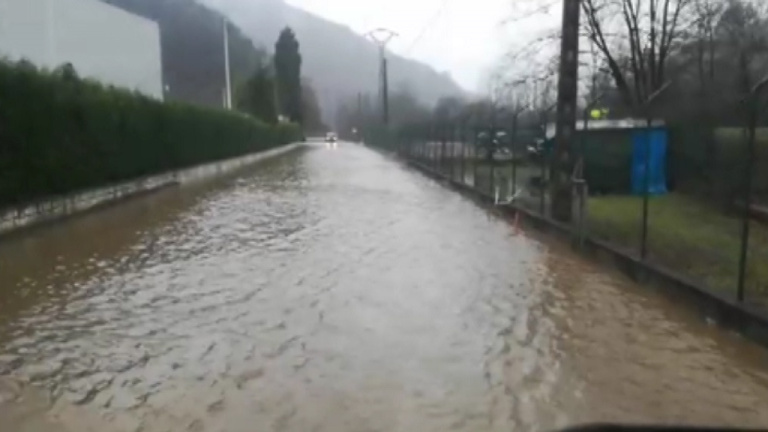Imágenes del aumento del caudal del Río Nalón tras las intensas lluvias que desde el martes está afectando a gran parte del Principado de Asturias. En las imágenes el desbordamiento en Ribera de Arriba.