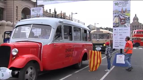 Barcelona ha hecho durante unas horas un viaje al pasado, gracias a una curiosa concentración de autobuses antiguos,algunos de ellos con más de 100 años. La peculiar flota ha recorrido las calles de la ciudad, para asombro de vecinos y turistas. 300 afortunados han podido subirse y hacer el recorrido dentro de estos vehículos.