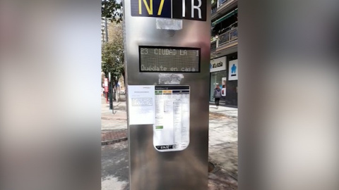 La empresa concesionaria del transporte público de autobús urbano, Avanza Zaragoza, ha instalado los lemas '#quedateencasa' y '#vamosaganar', en las pantallas dinámicas situadas en la parte superior de varias marquesinas.