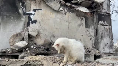 Banksy sorprende con una gimnasta en un edificio bombardeado en Ucrania