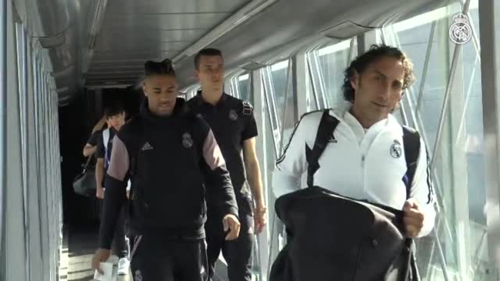 El Real Madrid CF ha viajado en la mañana de este martes a Gerona. El cuadro dirigido por Carlo Ancelotti ha sido recibido por numerosos aficionados blancos a su llegada a la ciudad catalana. El Madrid visita esta tarde el Estadio Montilivi para medirse al Girona durante una nueva jornada de LaLiga.