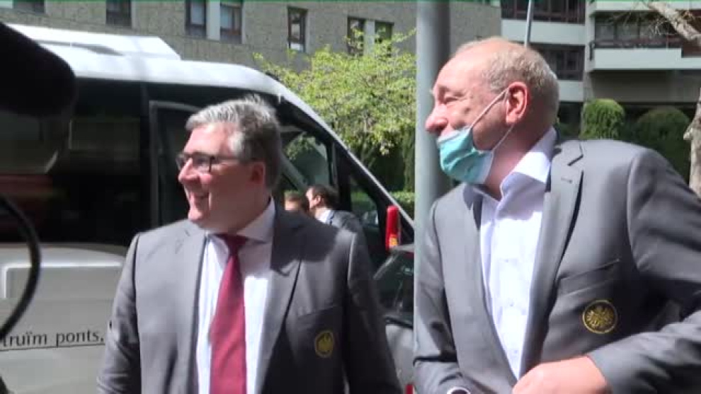 El FC Barcelona se juega esta noche ante el Eintracht de Frankfurt una plaza en semifinales de la Europa League. Como es habitual, horas antes del encuentro, ambas directivas han compartido mesa y mantel, en este caso en un restaurante de la ciudad condal. El presidente del club alemán, Peter Fisher, se ha mostrado convencido de que se llevarán la eliminatoria mientras Joan Laporta ha preferido no hacer declaraciones.