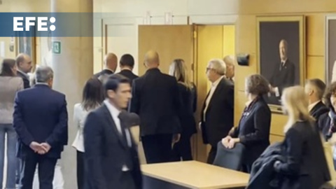 Madrid, 13 nov (EFE).- La esposa del Presidente del Gobierno, Begoña Gómez, ha salido rodeada de por diputados al término de su comparecencia en la comisión de la Asamblea de Madrid para investigar la creación de su cátedra. Gómez se ha negado a declarar.