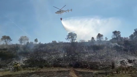 Imágenes de los bomberos de la Diputación de Zaragoza que trabajan en la extinción de un incendio forestal en Maella. El fuego se ha originado en torno a las 14.30 en una zona de pinos del término municipal de la localidad. En estos momentos ya está controlado, pero se calcula que las llamas han arrasado sobre unas dos hectáreas de monte. Hasta el lugar se han desplazado bomberos de la DPZ del parque de Caspe con una autobomba y un camión nodriza para colaborar con agentes de Proteccion de la Naturaleza del Gobierno de Aragón y efectivos de Protección Civil de Caspe y Guardia Civil. Se espera que el incendio se extinga en las próximas horas.