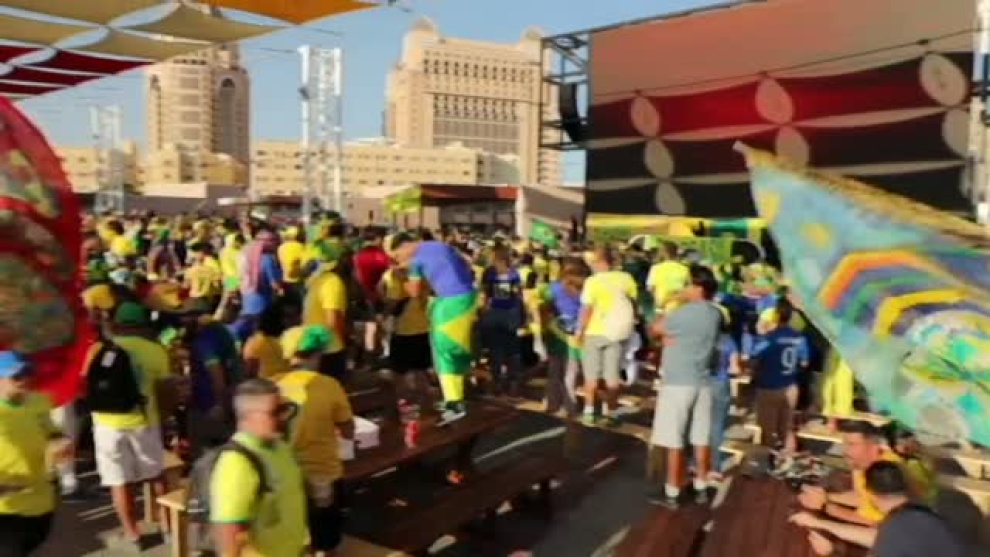 La afición brasileña celebra cada partido de su selección como una auténtica fiesta. Ataviados con sus banderas y con looks propios del carnaval, los aficionados han festejado con samba y cerveza el partido que se juega hoy: Brasil-Suiza. Los brasileños no pierden la fe en su equipo, la lesión de Neymar no parece preocuparles demasiado y confían en el buen hacer de su seleccionador, Tite para conseguir que Brasil pase a octavos como primera de grupo.