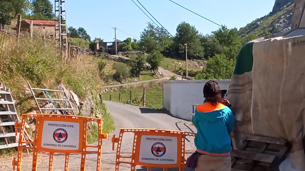 Imágenes de un miembro de Protección Civil poniendo vallas en la zona por la que se han perdido las espeleólogas.