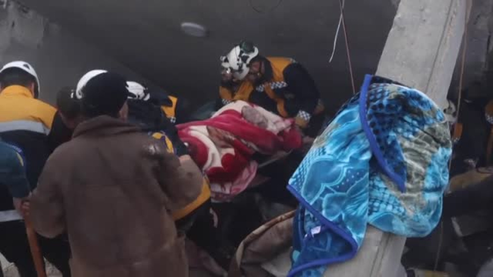 Vídeo AP La-Presse/Agencia Atlas - Siria, país ya de por sí devastado por la guerra, es víctima también de la devastación del terremoto que ha golpeado este lunes en Turquía y Siria, dejando al menos 1.600 muertos y una estampa de devastación en ambos países.En Siria se afanan por rescatar como puedan a los supervivientes entre montones de escombros, metal y hormigón. Se espera que la cifra de víctimas no deje de aumentar en las próximas horas.