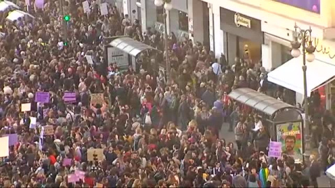 Mujeres de todas las edades han llenado las calles de España. También hombres, que comparten un grito unánime por la igualdad. Se trata de un gran movimiento feminista que recorre las vías principales de Madrid, Barcelona, Valencia, Bilbao y otros muchos lugares. Una marcha que sirve de colofón a una jornada de huelga en la que, según los sindicatos, han participado más de seis millones de personas. En Valencia esta tarde estaban convocadas dos manifestaciones con un mismo objetivo, la igualdad, pero con un matiz importante: en una de las marchas solo estaban permitidas mujeres.