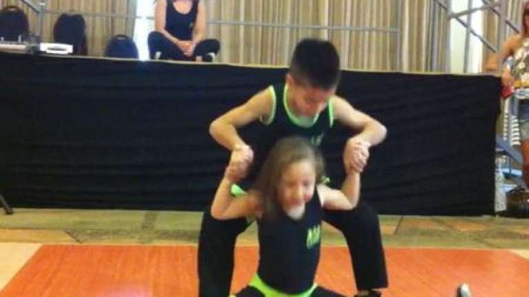 Se llaman Kevin y Beverly. Son las estrellas de un festival de baile celebrado en Israel. Bailan y además muy rápido. Nada raro si no fuera por su edad, ya que tienen seis y siete años. A tan temprana edad han conseguido Convertirse en unos auténticos bailarines profesionales. Porque estos pequeños no sólo han triunfado en un concurso representando a su país, Israel. Si no también en Internet, donde ya tienen miles de seguidores. Y es que no es fácil moverse así. Ni que decir tiene que en el concurso ellos fueron los ganadores. -Redacción-
