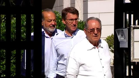 El magnate mexicano Carlos Slim está pasando unos días en la localidad de Avión, invitado por su amigo íntimo el gallego Olegario Vázquez Raña, otro de los hombres más ricos de México que será su anfitrión durante los días que esté en Galicia. Al empresario mexicano se le ha visto pasear como un vecino más y jugar a una partida de domino junto a Vázquez que hoy celebra el cumpleaños de su mujer acompañados de varios amigos, entre ellos el presidente de la Xunta, Alberto Núñez-Feijóo. "Galicia la aprecio y mis amigos me hacen el favor de conocerla y disfrutarla", ha contado Slim a las puertas de la casa de Olegario Vázquez.