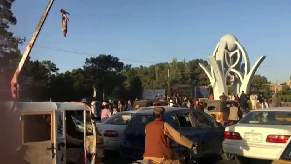 Los talibanes han colgado hoy los cuerpos de cuatro supuestos secuestradores en varias plazas públicas de Herat. Su intención es la de hacer llegar al pueblo el mensaje de que estas acciones no serán toleradas. Los cadáveres portaban carteles con el mensaje: "Los secuestradores serán castigados así". Al parecer los fallecidos habían participado en el secuestro de un empresario y su hijo. Tras ser localizados en un puesto de control, se produjo un tiroteo que acabó con la vida de los presuntos secuestradores.